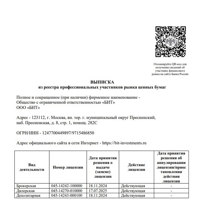 Покупайте виртуальные активы и акции ММВБ через лицензированного брокера BIT24, оплата доступна банковским переводом на счёт юридического лица или картой МИР
